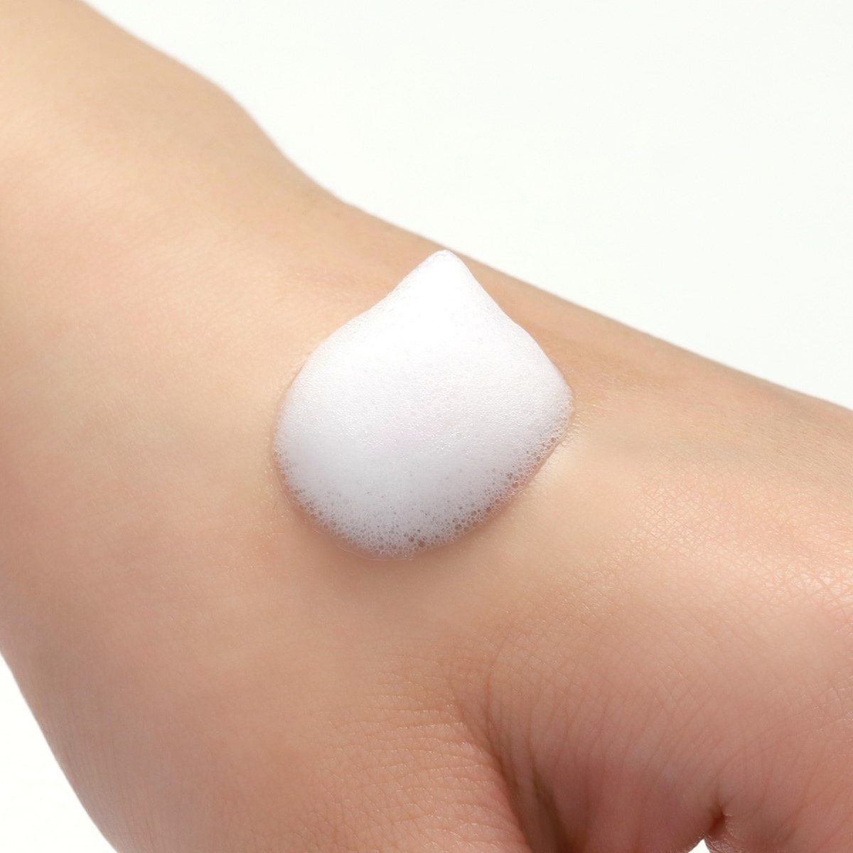 EG炭酸クレンジングでメイク落としをしてから、適量(ポンプ2~3回程度)を乾いた手に取り、顔を包み込むように優しく洗い、その後充分にすすいでください。